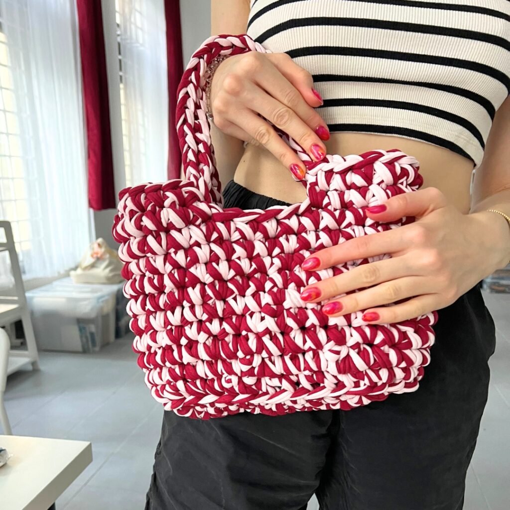 2 órát követően kezdő szintről eljutottunk odáig hogy már a majdnem kész az első horgolt táskánkat foghattuk a kezünkben!